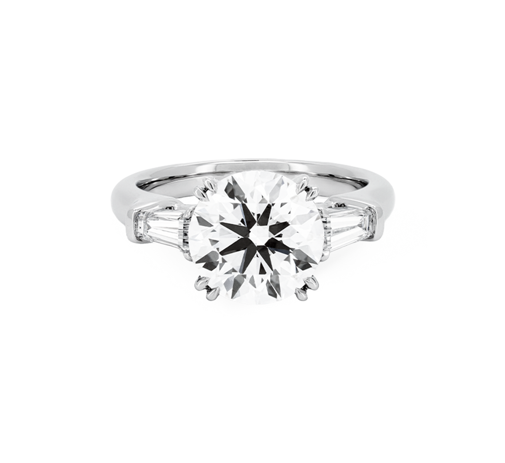 3 stone baguette ring RD 0.87 E VS2 IGI in white gold
