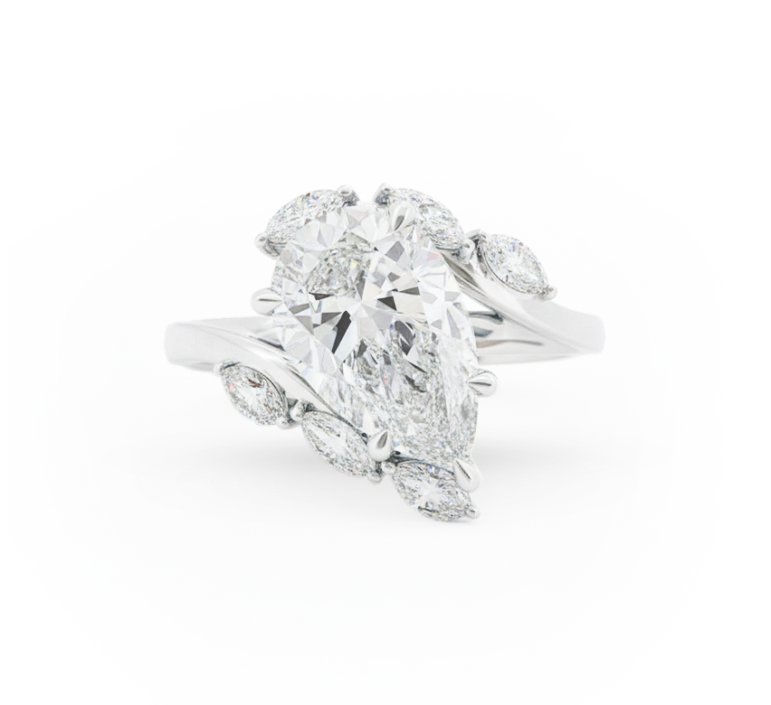 Pear Vine ring PE 2.53 E VS1 IGI in white gold